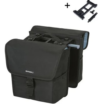 Maak kennis met de Basil GO Double Bag – de ideale dubbele fietstas voor de moderne forens. Deze zwarte tas voor achterop is perfect voor een rit naar de supermarkt of een gezellige tocht naar vrienden. Met een royale inhoud van 32 liter heb je altijd genoeg ruimte voor boodschappen, sportkleding of andere benodigdheden. De tas is gemaakt van hoogwaardig materiaal en wordt veilig afgesloten met een aansnoerkoord en kliksluiting. Dankzij de elastische zijvakken berg je gemakkelijk een flesje water of een paraplu op, terwijl twee verstelbare banden ruimte bieden voor snelbinders, een kinderzitje, veerklem of bagagedrager. De Basil GO Double Bag bevestig je eenvoudig aan de bagagedrager – ook op e-bikes – en de reflectiedetails zorgen voor optimale zichtbaarheid in het donker. Voor extra gebruiksgemak is deze tas voorzien van de MIK Adapterplate 2.0 en geschikt voor MIK systeemdragers. Heb je geen MIK bagagedrager? Geen probleem, dan monteer je eenvoudig de MIK Carrierplate (apart verkrijgbaar). Eigenschappen: