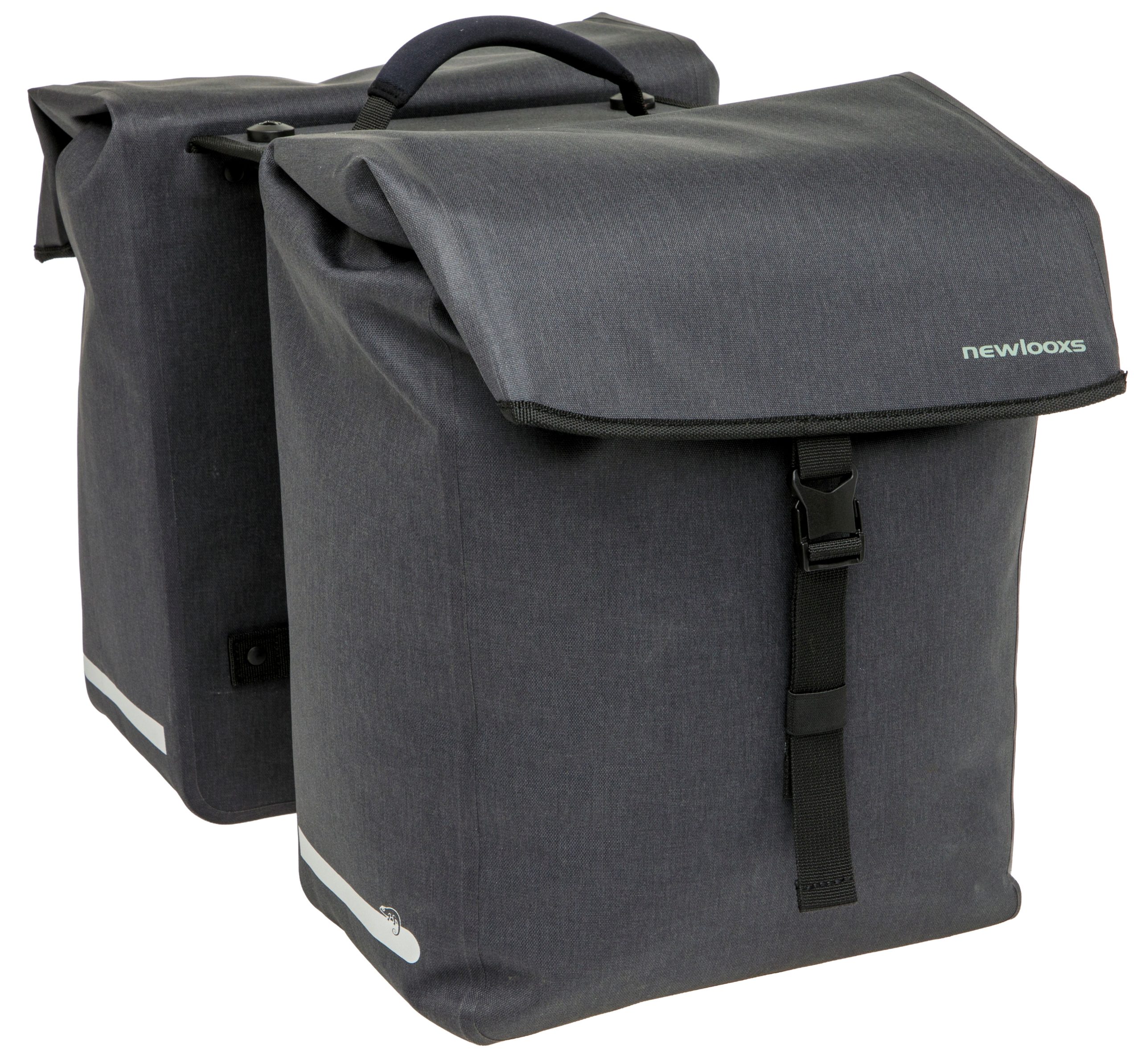 De Hamar Double is gemaakt voor de echte ‘door-weer-en-wind’ fietser. Deze dubbele fietstas is gemaakt van waterdicht gerecycled polyester. Deze tas heeft geen gestikte naden, je sluit het hoofdvak af met een aansnoersluiting én kliksluiting. Hierdoor kan er geen regenwater in de tas komen. Deze tas is geschikt voor fietsen met een MIK bagagedrager. Genoeg ruimte onderweg Deze fietstas heeft twee ruime hoofdvakken van 19 liter, zodat je veel spullen kunt meenemen. Binnen in de tas zit een extra ritsvak voor kleinere spullen, zoals een sleutel of portemonnee. Voor elk type weer Waar je ook naar toe fietst, met deze Hamar dubbele fietstassen weet je zeker dat jouw spullen droog op de plaats van bestemming aankomen. Door de gelaste naden is de tas waterdicht. De tas is gemaakt van gerecycled polyester, een duurzamere keuze. Het hoofdvak van de tas wordt gesloten door een trekkoord, vervolgens sluit je de klep af met een gesp. Een dubbele sluiting, waardoor er dus geen regenwater in de tas kan komen. De tas is afgewerkt met reflectie voor extra veiligheid in het donker. Eenvoudige bevestiging met MIK 2.0 De Hamar dubbele fietstas met MIK 2.0 adapter past op MIK bagagedragers. Kijk dus even goed of jij een bagagedrager met MIK-systeem op jouw fiets hebt. Heb je dit niet, dan kun je gebruik maken van een MIK Carrierplaat die je op je bagagedrager bevestigt. De tas heeft een voorgemonteerde MIK 2.0 adapter en wordt geleverd met 2 sleutels waardoor je de tas heel snel op de bagagedrager kunt klikken. Wil je de tas weer van de fiets afnemen, dan kan dit met 1 handbeweging. De kleine sleutel is geschikt als je de tas regelmatig meeneemt en dus van de bagagedrager afhaalt. Deze sleutel is uitschuifbaar en dus langer dan de kleine versie. Deze grotere sleutel is speciaal ontwikkeld voor grotere accessoires, die op de fiets blijven zitten. Je kunt dus kiezen welke sleutel je gebruikt, afhankelijk van of de tas op de fiets blijft zitten, of deze regelmatig van de bagagedrager wordt afgenomen. Het voordeel van het MIK bevestigingssysteem is dat de tas altijd goed bevestigd is op de bagagedrager. Daardoor blijft de tas goed zitten en hangt deze altijd mooi recht. Je kunt de fietstas extra vastzetten aan de zijkant van de bagagedrager met een klittenband riempje.