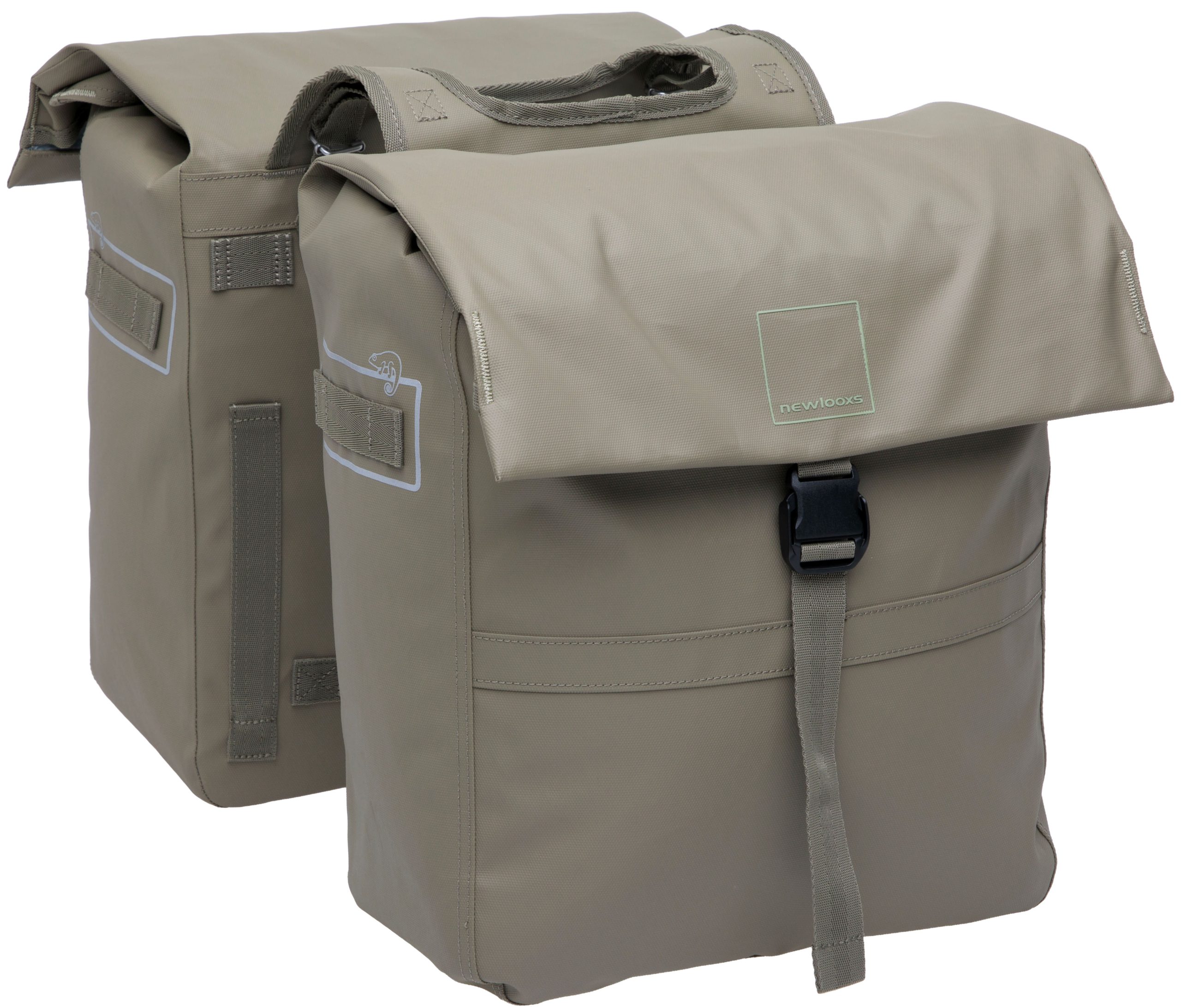 De Leeds Double is een ruime dubbele tas die gemaakt is van bijzonder sterk en kwalitatief gerecycled materiaal. De naden van deze tas zijn getapeted, dit houdt regen beter tegen. De tas heeft een stijlvol uiterlijk en veel praktische eigenschappen. In het grote hoofdvak vervoer je veel spullen. Daarnaast heeft de tas 1 extra ritsvak voor bijvoorbeeld sleutels of een portemonnee. Je sluit de tas met kliksluitingen. Voor extra veiligheid in het donker is de Leeds fietstas afgewerkt met reflectie aan beide zijden. Je bevestigt deze mooie fietstas aan de bagagedrager met riempjes, hierdoor is deze tas geschikt voor bijna elke fiets, ook elektrische. Multifunctionele (schouder)tas Wie veel fietst, mag hoge eisen stellen aan een fietstas. De Leeds Double heeft veel praktische kenmerken. De hoofdvakken van de tas sluit je met een kliksluiting. Deze sluitingen van deze tas openen en sluiten extra makkelijk. Fijn als je je handen vol hebt met boodschappen, of last hebt van bijv. reumatische klachten. De tas heeft 2 ruime hoofdvakken en een extra ritsvakje in de tas. Zo neem je alle spullen goed georganiseerd mee. Past op (bijna) elke fiets De fietstas wordt aan de bagagedrager bevestigd met riempjes. Dat maakt deze tas geschikt voor vrijwel alle fietsen, zeker ook voor elektrische fietsen. Je kunt de fietstas extra vastzetten aan de zijkant van de bagagedrager met een klittenband riempje. Je zet de tas 1 keer vast en daarna zit deze goed bevestigd op de drager. Stevig en slijtvast De Leeds Double is gemaakt van gerecycled polyester, een bewustere keuze dus. De tas is eenvoudig af te nemen met een vochtig doekje, waardoor hij lang mooi blijft. De stof is waterdicht en de naden zijn getapeted. Dit zorgt ervoor dat regen beter tegengehouden wordt, je kunt deze tas dus zeker gebruiken in een bui. Wil je de tas 100% waterdicht maken? Dan gebruik je een New Looxs regenhoes. Afstandhouder Je kunt bij de tas een New Looxs afstandhouder gebruiken, deze is separaat te koop. Deze voorkomt dat de tas tegen het wiel aan komt. Je steekt de afstandhouder in de insteekstrips op de achterkant van de fietstas. Dan blijft de tas, ook zwaar beladen, altijd netjes recht op de bagagedrager hangen.