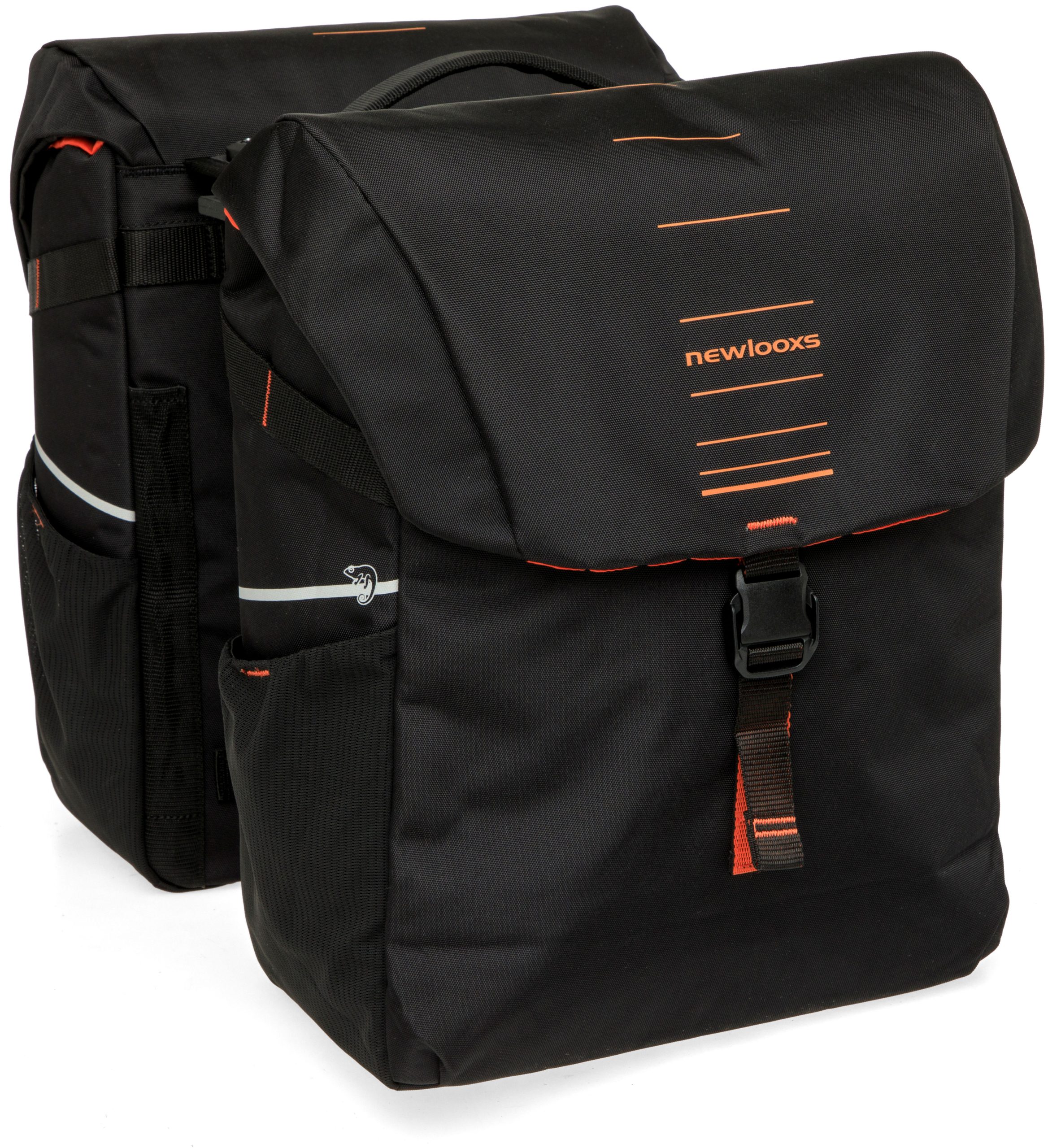 Deze populaire tas is vernieuwd en heeft een frisse look gekregen. Kan iets dat al heel goed is, nóg beter worden? Wij denken van wel! De Vigo Double is een degelijke dubbele fietstas met een sportieve uitstraling. De kleuraccenten op de tas geven de tas een frisse look. Met een handig formaat is deze moderne tas perfect voor dagelijks gebruik. Deze tas is geschikt voor fietsen met een MIK bagagedrager. De dubbele tas beschikt over 2 hoofdvakken en 3 extra vakken. Vigo is gemaakt van gerecycled polyester, een bewustere keuze. De bijgeleverde regenhoes zorgt ervoor dat alles droog blijft. Praktisch en sportief design Wie veel kilometers maakt, mag hoge eisen stellen aan een fietstas. De Vigo Double heeft veel praktische kenmerken. De hoofdvakken van de tas sluit je met een aansnoersluiting. Vervolgens sluit je de klep eenvoudig met kliksluitingen. Deze sluitingen van deze tas openen en sluiten extra makkelijk. Fijn als je je handen vol hebt met boodschappen, of last hebt van bijv. reumatische klachten. De tas heeft 2 ruime hoofdvakken, elastische zijvakken en 3 extra vakken. Zo neem je alle spullen goed georganiseerd mee. Eenvoudige bevestiging met MIK 2.0 De Vigo dubbele fietstas met MIK 2.0 adapter past op MIK bagagedragers. Kijk dus even goed of jij een bagagedrager met MIK-systeem op jouw fiets hebt. Heb je dit niet, dan kun je gebruik maken van een MIK Carrierplaat die je op je bagagedrager bevestigt. De tas heeft een voorgemonteerde MIK 2.0 adapter en wordt geleverd met 2 sleutels waardoor je de tas heel snel op de bagagedrager kunt klikken. Wil je de tas weer van de fiets afnemen, dan kan dit met 1 handbeweging. De kleine sleutel is geschikt als je de tas regelmatig meeneemt en dus van de bagagedrager afhaalt. Deze sleutel is uitschuifbaar en dus langer dan de kleine versie. Deze grotere sleutel is speciaal ontwikkeld voor grotere accessoires, die op de fiets blijven zitten. Je kunt dus kiezen welke sleutel je gebruikt, afhankelijk van of de tas op de fiets blijft zitten, of deze regelmatig van de bagagedrager wordt afgenomen. Het voordeel van het MIK bevestigingssysteem is dat de tas altijd goed bevestigd is op de bagagedrager. Daardoor blijft de tas goed zitten en hangt deze altijd mooi recht. Je kunt de fietstas extra vastzetten aan de zijkant van de bagagedrager met een klittenband riempje. Veilig onderweg De Vigo Double is stevig en vormvast door de kunststof platen in de bodem en achterwand. Daarnaast is de fietstas extra verstevigd met foam. Daardoor blijft de tas goed in vorm en kun je makkelijk je spullen in de tas stoppen. De dubbele Vigo fietstas is gemaakt van waterafstotend gerecycled polyester. Doordat de klep over de tas heen valt, is de tas goed waterafstotend voor kleinere regenbuien. Deze tas wordt geleverd mét bijpassende regenhoes. Zo heb je deze altijd bij de hand en maak je de tas 100% waterdicht. De tas is afgewerkt met reflectie voor extra veiligheid in het donker. Op de zijkanten van de tas zitten bandjes waar je eenvoudig een ledlampje op kunt bevestigen voor extra zichtbaarheid Afstandhouder Je kunt bij de tas een New Looxs afstandhouder gebruiken, deze is separaat te koop. Deze voorkomt dat de tas tegen het wiel aan komt. Je steekt de afstandhouder in de insteekstrips op de achterkant van de fietstas. Dan blijft de tas, ook zwaar beladen, altijd netjes recht op de bagagedrager hangen.