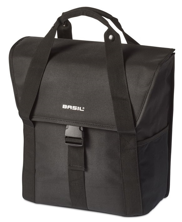 Maak kennis met de Basil Go – de robuuste enkele fietstas voor de moderne forens en student. Deze stijlvolle tas in elegant zwart is gemaakt van hoogwaardig kunststof en biedt een ruime inhoud van maar liefst 18 liter. Perfect voor schoolboeken, een laptop, een regenvest en meer, houdt deze tas al je spullen veilig en overzichtelijk opgeborgen. Het hoofdcompartiment sluit je eenvoudig af met een aansnoerkoord, terwijl dubbele elastische zijvakken en praktische handgrepen extra gebruiksgemak bieden. De dubbele reflecterende strepen verhogen de zichtbaarheid en dragen bij aan je veiligheid onderweg. Bevestig de tas moeiteloos met het Hook-On systeem aan de bagagedrager van je fiets. Wil je de tas liever als schoudertas gebruiken? Dan berg je het bevestigingssysteem eenvoudig op in het ritsvak. Eigenschappen: