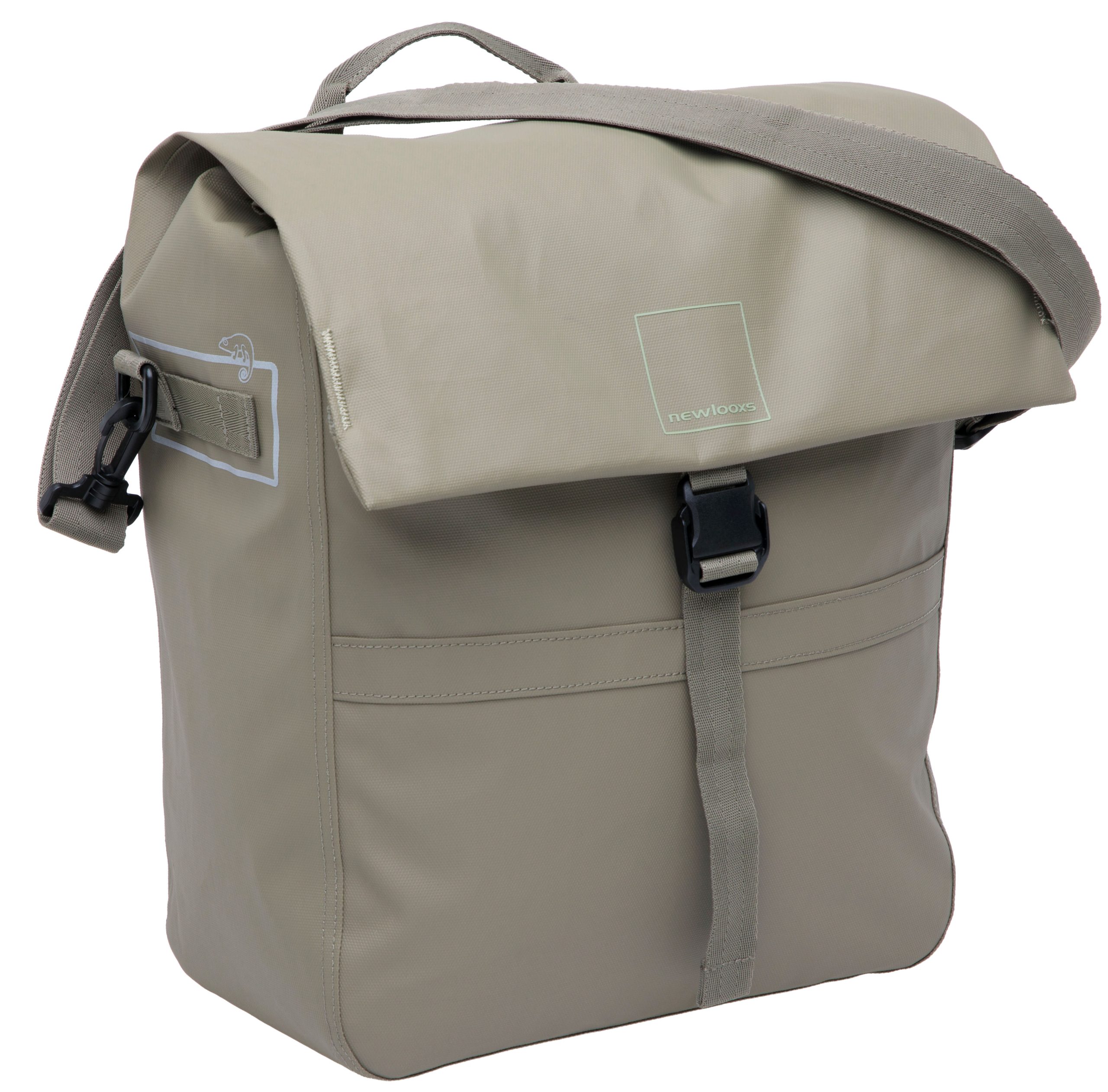 De Leeds Single is een ruime enkele fietstas die gemaakt is van bijzonder sterk en kwalitatief gerecycled materiaal. De naden van deze tas zijn getapeted, dit houdt regen beter tegen. De tas heeft een stijlvol uiterlijk en veel praktische eigenschappen. In het grote hoofdvak vervoer je veel spullen. Daarnaast heeft de tas 1 extra ritsvak en 3 extra kleinere vakken. Zo neem je al je spullen georganiseerd mee. Je sluit de tas met kliksluiting. Voor extra veiligheid in het donker is de Leeds fietstas afgewerkt met reflectie aan beide zijden. Je bevestigt deze mooie fietstas aan de bagagedrager met haken. Deze zijn afdekbaar, zodat je hem met de schouderband ook als schoudertas kan gebruiken. Multifunctionele (schouder)tas Deze fietstas heeft een ruim hoofdvak van 19 liter. Door de afneembare en verstelbare schouderband is deze tas multifunctioneel te gebruiken, op én naast de fiets. Het hoofdvak wordt afgeloten met een kliksluiting. De sluiting van de tas opent en sluit extra makkelijk. Fijn als je je handen vol hebt met boodschappen, of last hebt van bijv. reumatische klachten. De tas heeft een extra ritsvak in de tas en 3 extra kleinere vakken, zo neem je al je spullen georganiseerd mee. Past op (bijna) elke fiets De fietstas wordt aan de bagagedrager bevestigd met New Looxs kunststof haken. Dat maakt deze tas geschikt voor vrijwel alle fietsen, ook elektrische. Met een klittenband riempje zet je de fietstas extra vast aan de zijkant van de bagagedrager. Als je de tas van de fiets haalt, dek je de haken af met een ritsvakje. Hierdoor heb je geen last meer van de haken en ziet de tas er uit als een gewone schoudertas! Stevig en slijtvast De Leeds Single is gemaakt van gerecycled polyester, een bewustere keuze dus. De tas is eenvoudig af te nemen met een vochtig doekje, waardoor hij lang mooi blijft. De stof is waterdicht en de naden zijn getapeted. Dit zorgt ervoor dat regen beter tegengehouden wordt, je kunt deze tas dus zeker gebruiken in een bui. Wil je de tas 100% waterdicht maken? Dan gebruik je een New Looxs regenhoes.