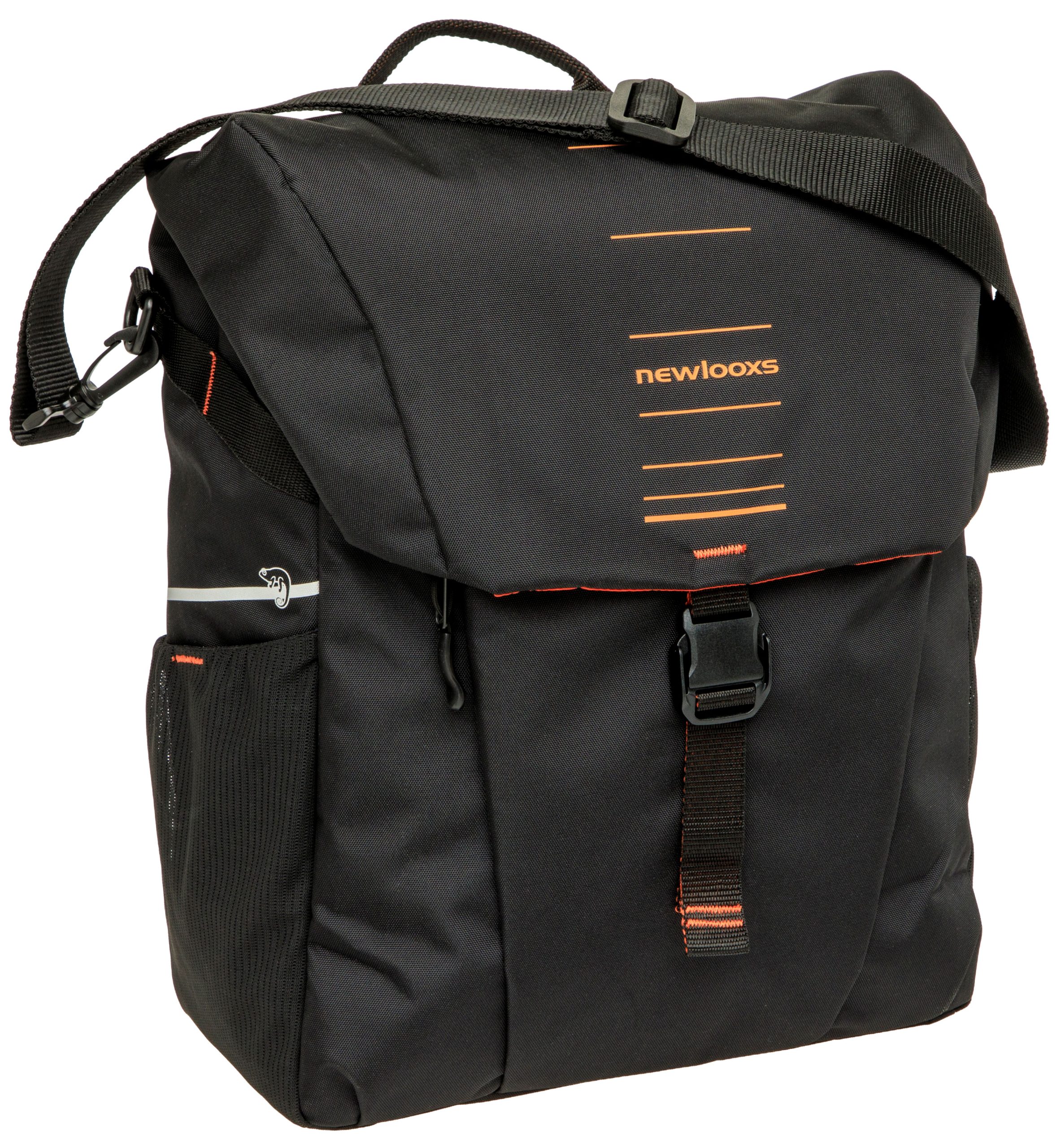 Deze populaire tas is vernieuwd en heeft een frisse look gekregen. Kan iets dat al heel goed is, nóg beter worden? Wij denken van wel! De Vigo Single is een enkele fietstas met een sportieve uitstraling. De kleuraccenten op de tas geven de tas een frisse look. Met een handig formaat is deze moderne tas perfect voor dagelijks gebruik. Als je de tas van de fiets haalt, dek je de haken af met een ritsvakje, waardoor je de tas als schoudertas kan gebruiken. De tas heeft een verstelbare, afneembare schouderband. De fietstas past op vrijwel alle fietsen, ook elektrische. De Vigo is gemaakt van gerecycled polyester, een bewustere keuze. De bijgeleverde regenhoes zorgt ervoor dat alles droog blijft. Praktisch en sportief design Wie veel kilometers maakt, mag hoge eisen stellen aan een fietstas. De Vigo Single heeft veel praktische kenmerken. Het hoofdvak van de tas sluit je met een aansnoersluiting. Vervolgens sluit je de klep eenvoudig met kliksluitingen. Deze sluitingen van deze tas openen en sluiten extra makkelijk. Fijn als je je handen vol hebt met boodschappen, of last hebt van bijv. reumatische klachten. Dankzij het ruime hoofdvak met extra ritsvakje, 2 elastische zijvakken en een extra voorvak met rits, neem je spullen goed georganiseerd mee. Eenvoudige bevestiging met R&K haken De Vigo enkele fietstas wordt op de bagagedrager bevestigd met R&K haken. Rixen & Kaul haken kunnen worden afgesteld op de breedte van een bagagedrager. Zo passen de haken perfect op iedere bagagedrager met een buisdiameter van 6 tot 16 mm. De extra vergrendeling tussen de haken zorgt ervoor dat de tas niet zomaar van de bagagedrager getrokken kan worden. De bevestigingshaken kunnen afgedekt worden met een ritsvak. Hierdoor kun je de tas als schoudertas gebruiken, door middel van de verstelbare, afneembare schouderband. Veilig onderweg De Vigo Single is stevig en vormvast door de kunststof platen in de bodem en achterwand. Ook is de fietstas extra verstevigd met foam. Daardoor blijft de tas goed in vorm en kun je makkelijk je spullen in de tas stoppen. De enkele Vigo fietstas is gemaakt van waterafstotend gerecycled polyester. Doordat de klep over de tas heen valt, is de tas goed waterafstotend voor kleinere regenbuien. Wil je dat de tas ook zware regenbuien doorstaat? Deze tas wordt geleverd mét bijpassende regenhoes. Zo heb je deze altijd bij de hand en maak je de tas 100% waterdicht. De tas is afgewerkt met reflectie voor extra veiligheid in het donker. Op de zijkanten van de tas zitten bandjes waar je eenvoudig een ledlampje op kunt bevestigen voor extra zichtbaarheid.
