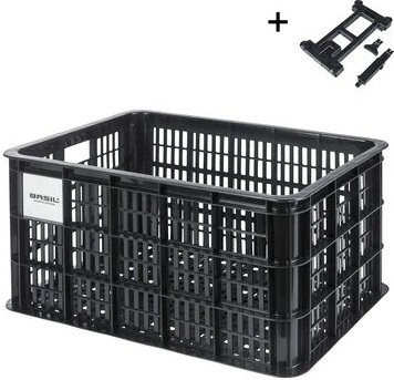 Ontdek de Basil fietskrat – de perfecte oplossing voor veilig en comfortabel je spullen vervoeren. Geen zware boodschappentassen meer aan je stuur of schooltas op je rug! Met de ruime fietskrat L, met een inhoud van 40 liter, neem je al jouw boodschappen, schoolspullen of andere benodigdheden gemakkelijk mee. Veilig en Duurzaam Deze stijlvolle fietskrat is vervaardigd uit gerecycled kunststof, gemaakt van post-consumer afval (regranulaat), wat niet alleen zorgt voor extra stevigheid maar ook bijdraagt aan een duurzame keuze. Bovendien vindt de productie in Nederland plaats, zodat je met een gerust hart kiest voor een milieuvriendelijke optie. Slim Design en Eenvoudige Bevestiging Een leuk detail: de krat wordt geleverd met een contrasterende kratklikker. Klik deze op elke gewenste plek en je bent klaar om te gaan! De krat is voorzien van een voorgemonteerde MIK-adapterplaat, waardoor je hem in één klik op je bagagedrager bevestigt – perfect voor zowel reguliere fietsen als e-bikes. Heb je geen MIK-drager? Geen probleem, monteer eenvoudig een MIK Carrierplaat. Eigenschappen op een Rij: