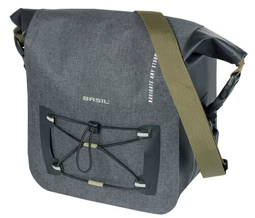 De Basil Navigator Storm Stuurtas is een sportieve stuurtas voor aan je fietsstuur. Het is de onmisbare accessoire voor elke fietstocht, van kleine fietstocht tot fietsvakantie. De tas is speciaal ontworpen voor het meenemen van een smartphone of andere spullen die je tijdens je fietsrit nodig hebt. 100% waterdicht De stuurtas is uitgevoerd in waterdicht polyester en tarpaulin en zal dus nog jaren meegaan op jouw fietstochten. De tas heeft een sportieve uitstraling en sluit perfect aan bij de andere tassen uit de Navigator Storm collectie. Aan alles is gedacht om jouw spullen zo praktisch mogelijk overal mee naartoe te nemen. Zo is er een verstelbaar elastieken koord, rits en mesh vak aan de binnenzijden van de tas en kan de stuurtas eenvoudig worden gesloten met de roltopsluiting. Je sleutels raak je ook nooit meer kwijt dankzij de musketonhaak. In het donker op pad? Geen probleem! Met de reflecterende Basil logo’s op 3 zijden ben jij ook dan beter zichtbaar. Met de afneembare schouderband maak je in een handomdraai van deze fietstas een schoudertas. Bevestig gemakkelijk de stuurtas op je stuur met behulp van de voorgemonteerde KF adapterplaat (KF systeem niet meegeleverd). Met dit innovatieve systeem klik je in 1 seconden je tas van en op je stuur. Natuurlijk ook geschikt voor e-bikes. Eigenschappen: