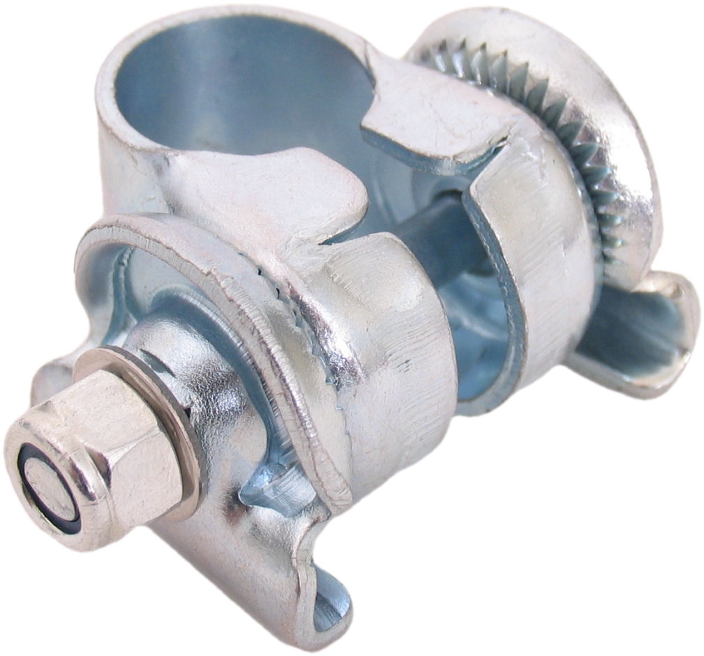Verchroomde zadelklem. Eigenschappen: