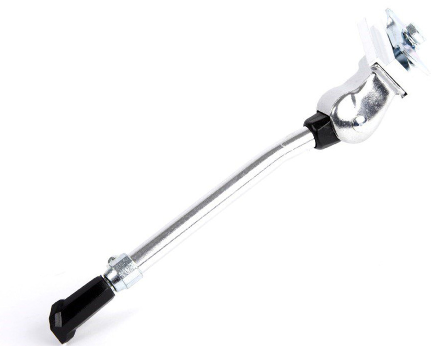 Mirage standaard 20-28 Deze Mirage standaard is een universele standaard welke past op vele fietsen van 20 tot 28 (wielmaat) doordat de verstelbare standaardlengte. Ook is deze Mirage standaard, gemaakt voor de 28mm bevestigings-plaat (bracket) breedte, met de meegeleverde adapter ook passend op de smallere bevestiging van 18mm breed. Dit zonder af te doen aan de stevigheid. Mirage universele standaard zet de standaard Deze Mirage standaard zou standaard bij elke klusser op voorraad moeten liggen. De Mirage universele standaard past op veel fietsen door de verstelbaarheid in lengte én de meegeleverde adapter naar smalle plaat. Met de bout aan de achterzijde kan de standaard gefixeerd worden nadat de juiste lengte is bepaald. De kunststof voet aan de onderzijde geeft extra stabiliteit. Kortom deze Mirage standaard is betaalbaar compleet.